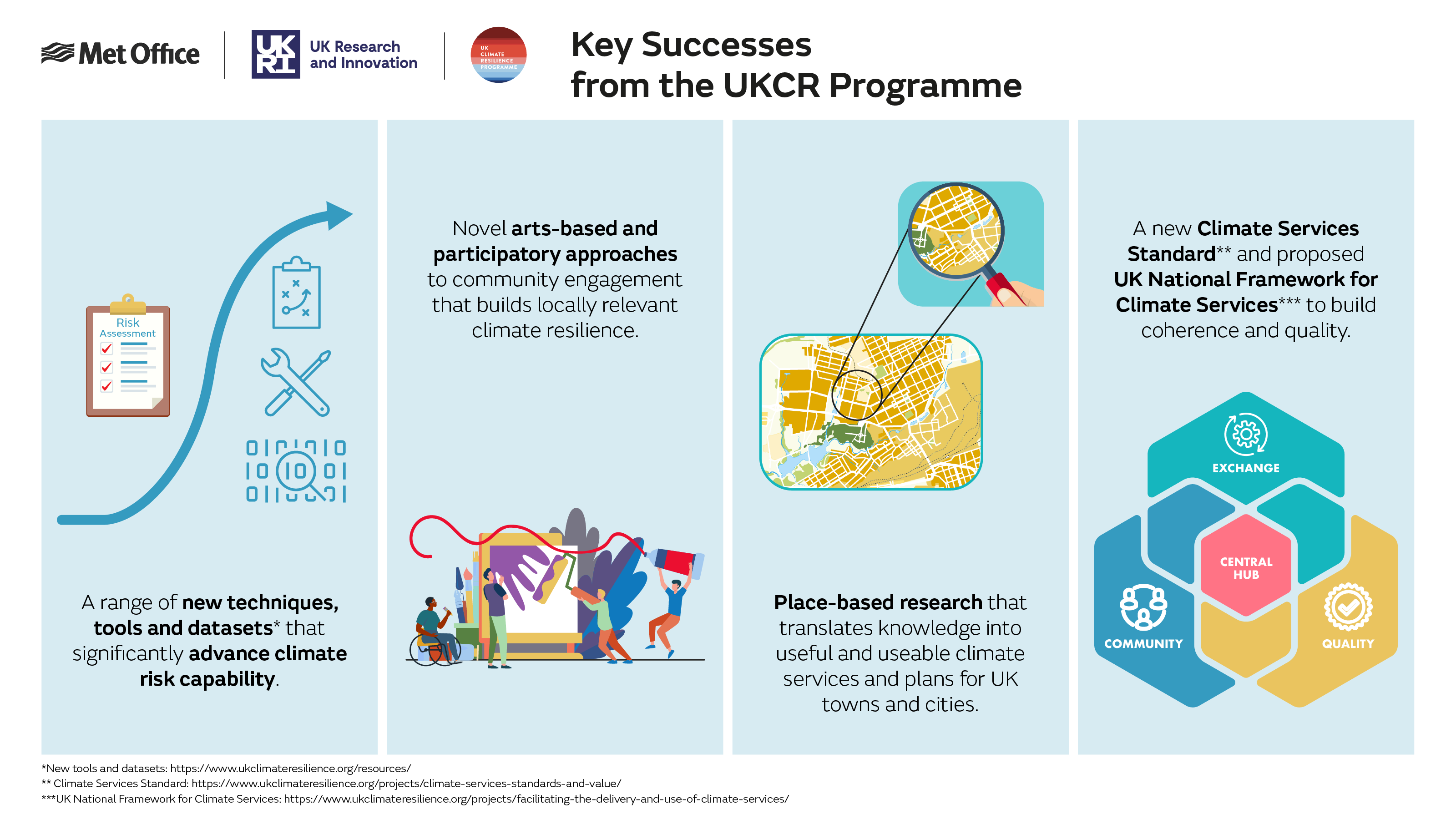Since its launch in 2019, the UK Climate Resilience Programme (UKCR) has helped prepare the country for climate variability and change, and build resilience. Led by UK Research and Innovation (UKRI) and the Met Office, the programme has commissioned and funded more than 60 projects. These have focussed on characterising and quantifying climate-related risks, managing those risks through adaptation, and working with partners to turn climate information and knowledge into useable climate services. So, as the programme concludes, what has the programme achieved and how has it made a difference to the UK?